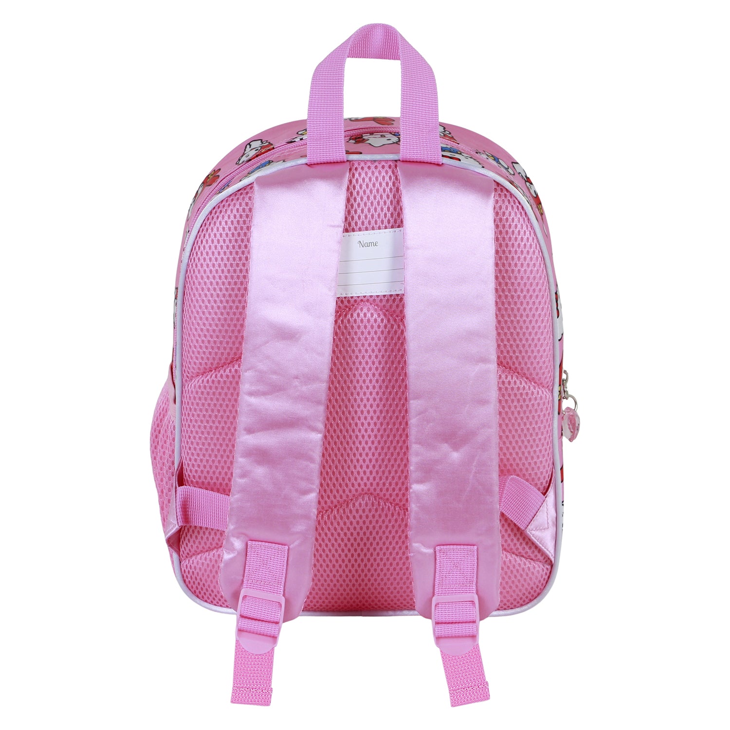 Mochila preescolar con un único compartimento. Diseño con relieve frontal y un bolsillo lateral de malla. Espalda y correas de hombro acolchadas. Incluye una etiqueta de identificación en la espalda.