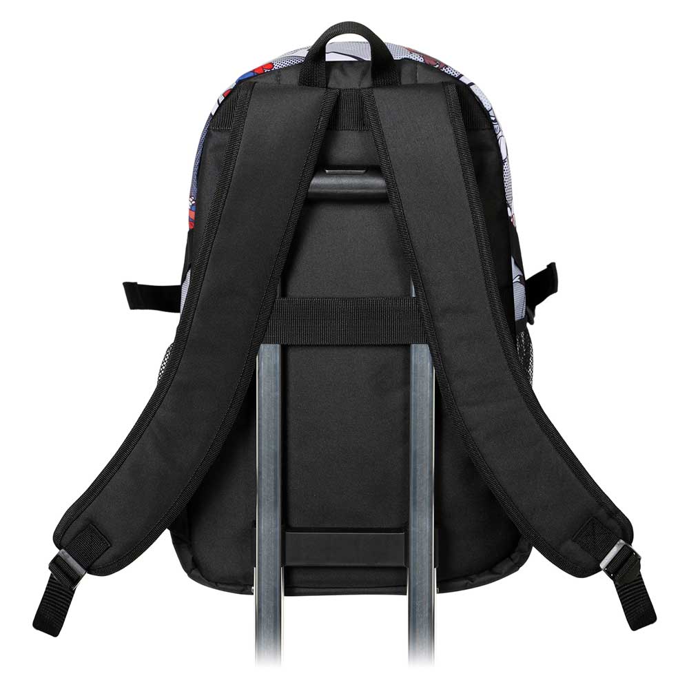 Mochila urbana ligera con un único compartimento y dos bolsillos frontales. Correas acolchadas ajustables, dos bolsillos laterales de malla y cinta trasera adaptable a trolley. Interior con forro y bolsillo acolchado para dispositivos electrónicos.