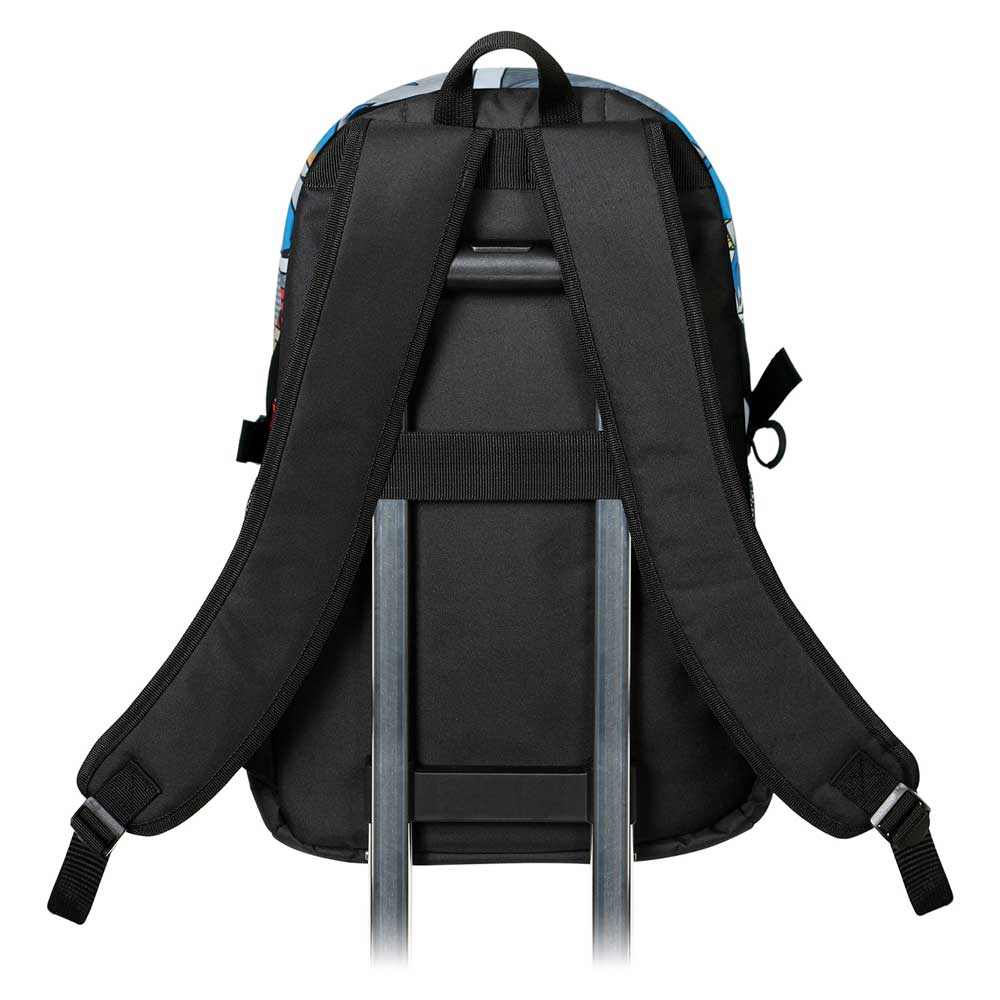 Mochila urbana ligera con un único compartimento y dos bolsillos frontales. Correas acolchadas ajustables, dos bolsillos laterales de malla y cinta trasera adaptable a trolley. Interior con forro y bolsillo acolchado para dispositivos electrónicos.
