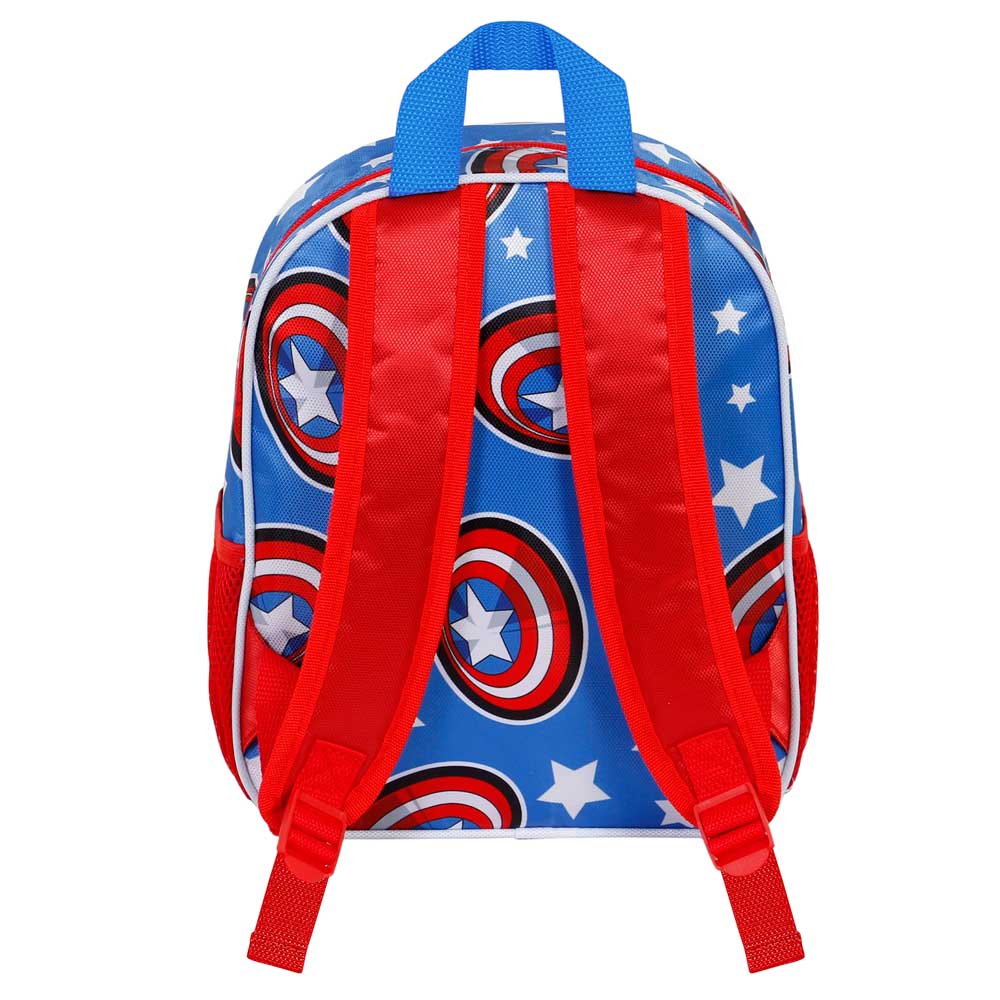 Mochila preescolar con relieve frontal 3D. Compartimento principal con cremallera y forro interior. Dos bolsillos laterales de malla.