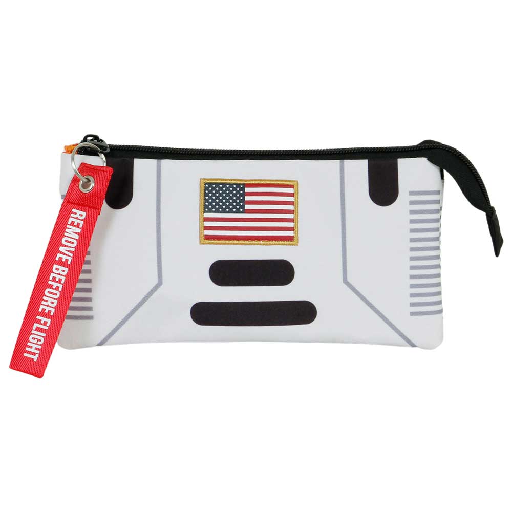Estuche portatodo rectangular con tres compartimentos para tus pertenencias. Los dos bolsillos exteriores se abren con la cremallera principal y el tercero con una propia.