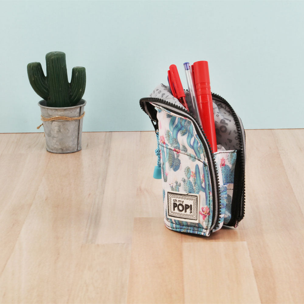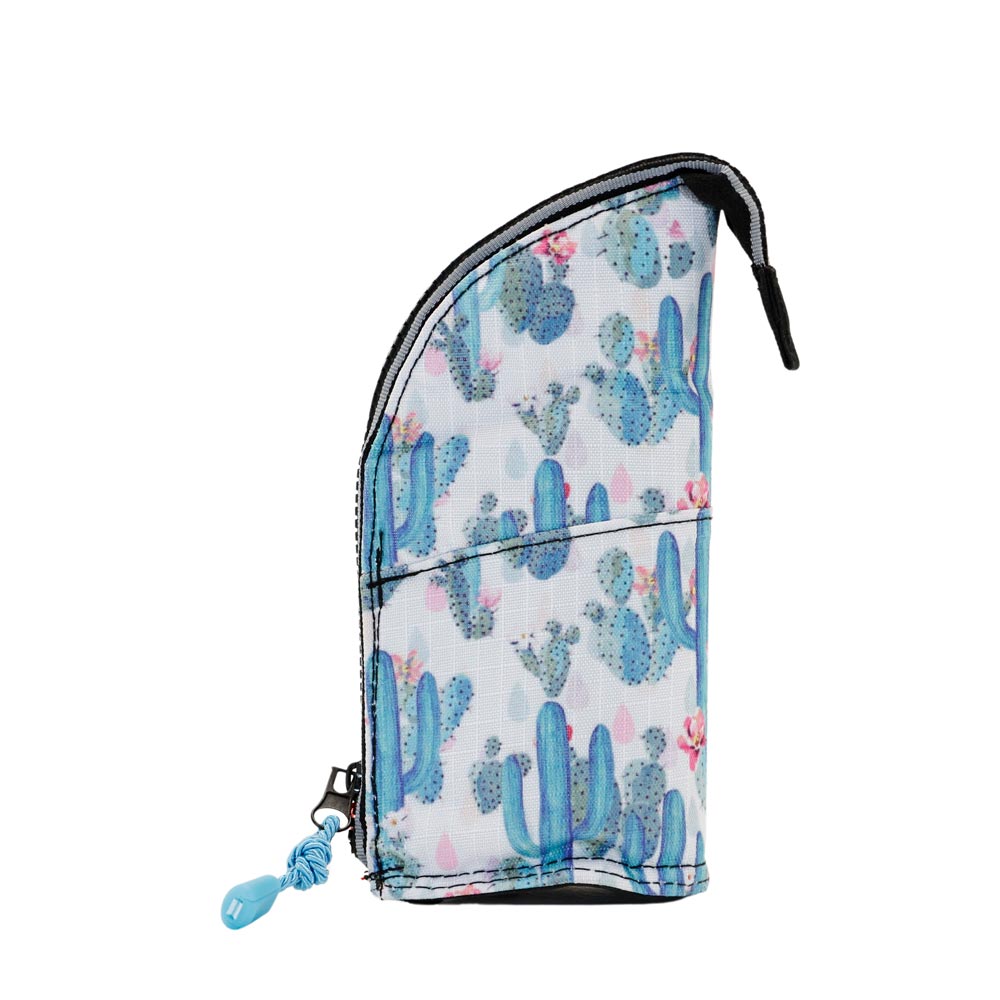 Estuche portatodo vertical con cierre de cremallera. Compartimento principal con bolsillo pequeño adicional. Puede usarse también como lapicero para escritorio.