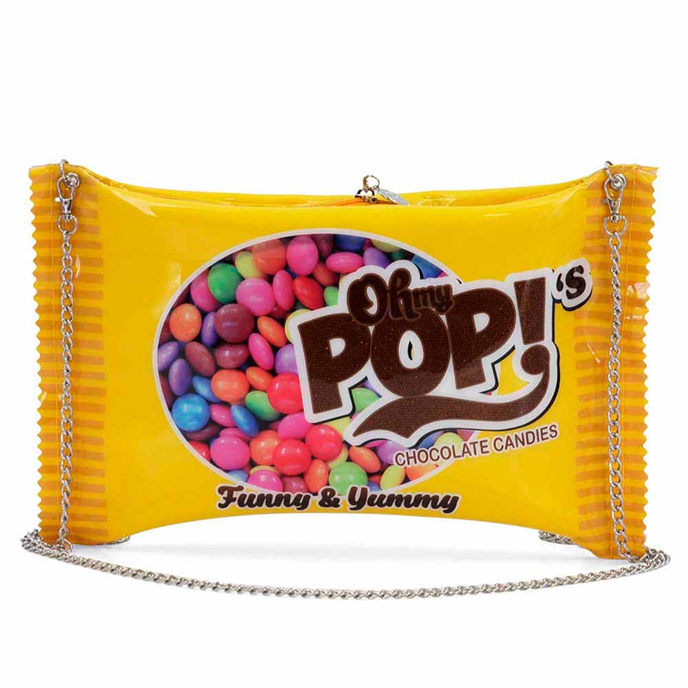 Bolso bandolera con compartimento principal y bolsillo posterior con cremallera. Correa al hombro de cadena de 130cm.