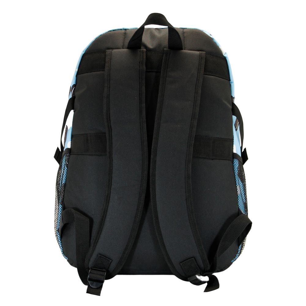 Mochila urbana ligera con un compartimento, un bolsillo frontal grande y otro transparente. Correas acolchadas ajustables, dos bolsillos laterales de malla y cinta trasera adaptable a trolley. Interior con bolsillo para dispositivos electrónicos.