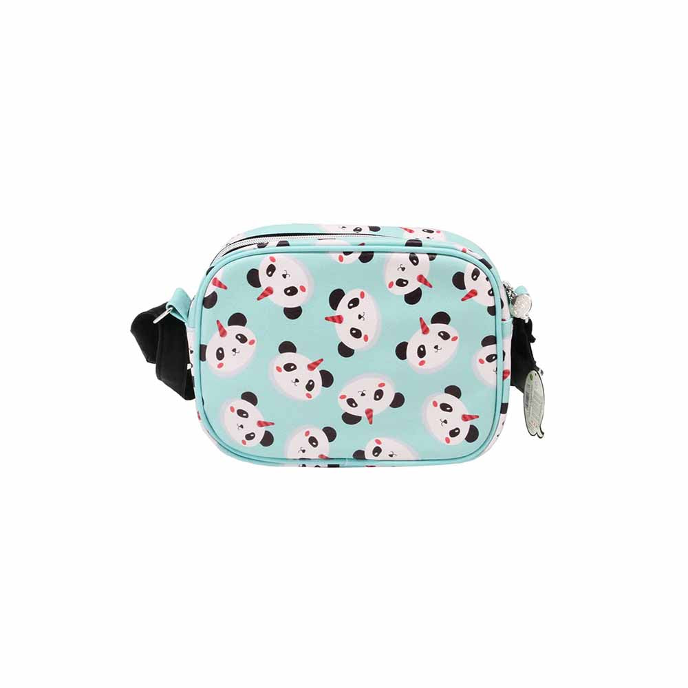 Bolso bandolera rectangular con correa ajustable de 124 cm. Compartimento único cerrado con cremallera y forro interior.