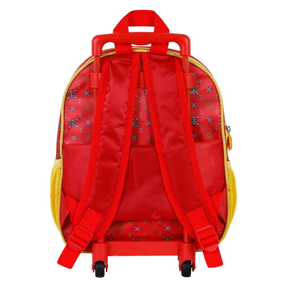 Mochila infantil con ruedas. Exterior con relieve frontal 3D. Compartimento principal con cierre de cremallera y dos bolsillos laterales de malla. Carro no extraible.