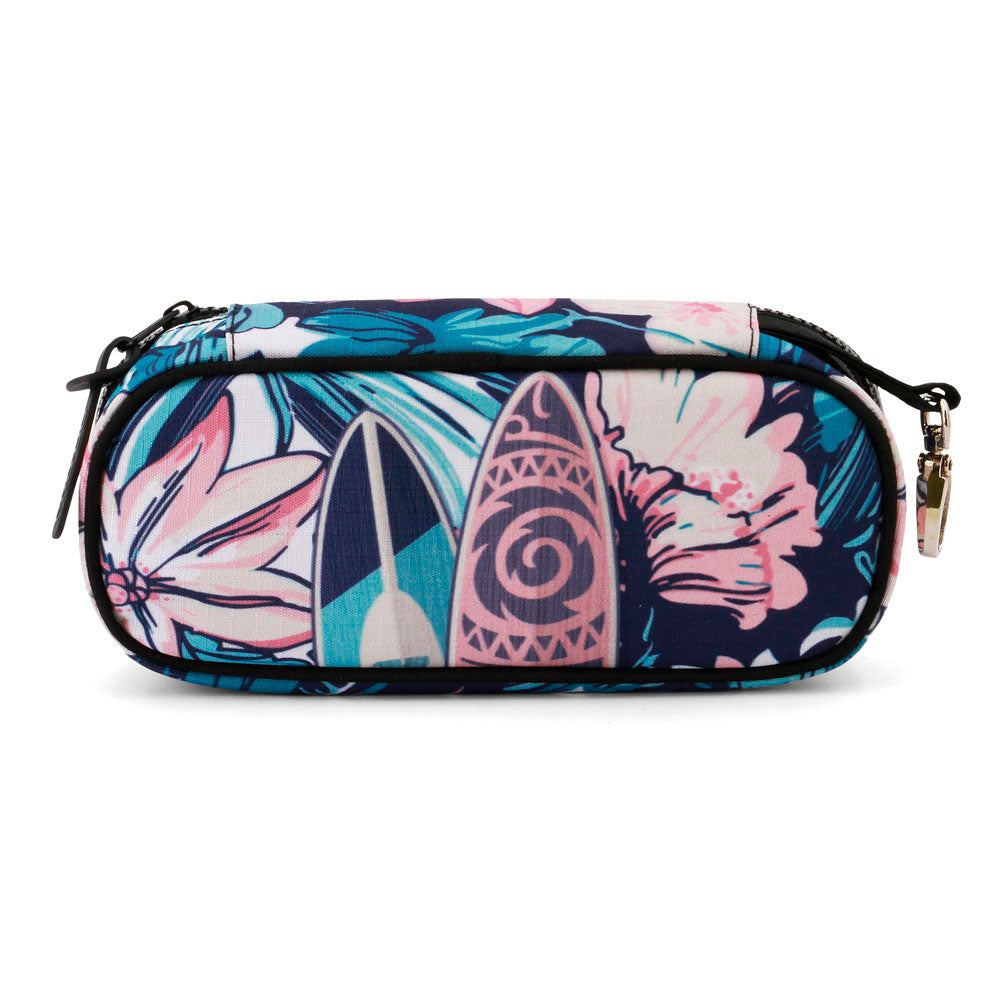 Estuche con compartimento principal que incluye organizador para lápices y pinceles. Bolsillo interior con cremallera y asa lateral exterior.