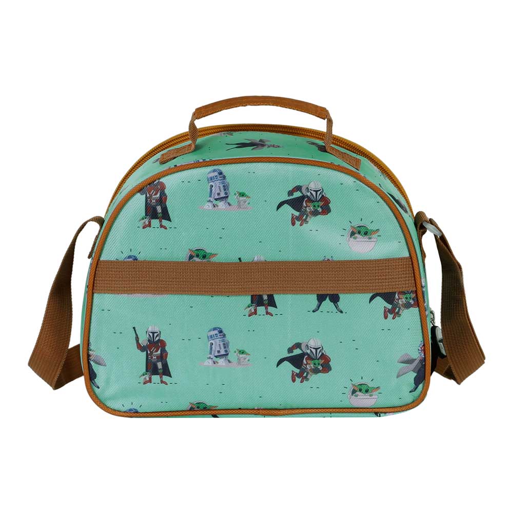 Merendero de un solo compartimento con forro isotérmico para conservar los alimentos a temperatura óptima. Cierre de cremallera, asa superior y bandolera ajustable de 55-110 cm de longitud. Diseño con relieve frontal. Cinta trasera para transporte encarrito.
