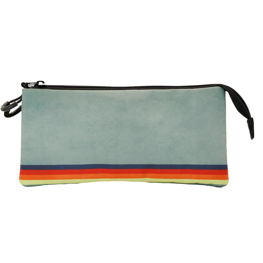 Estuche portatodo rectangular con tres compartimentos para tus pertenencias. Los dos bolsillos exteriores se abren con la cremallera principal y el tercero con una propia.